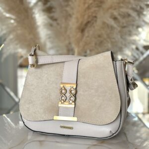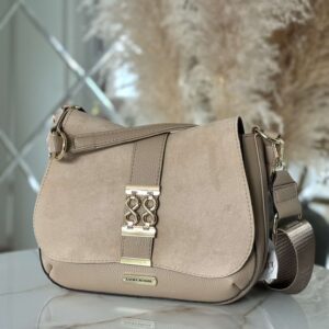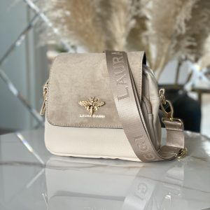 Torebka Laura Biaggi pszczółka listonoszka beżowa zamsz