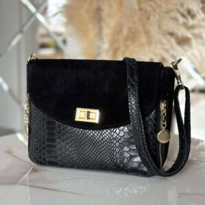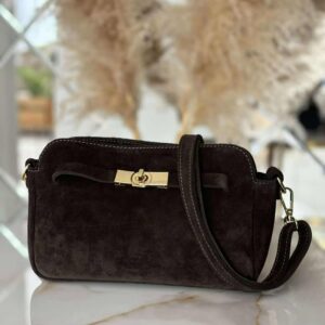 Torebka skóra naturalna listonoszka kuferek gorzka czekolada zamsz