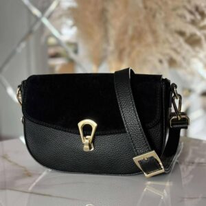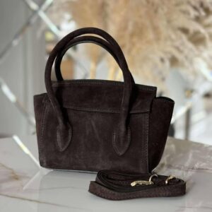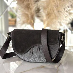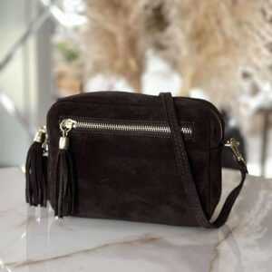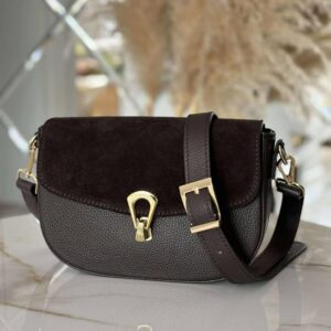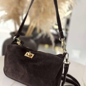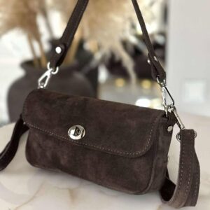 Torebka skóra naturalna listonoszka gorzka czekolada zamsz